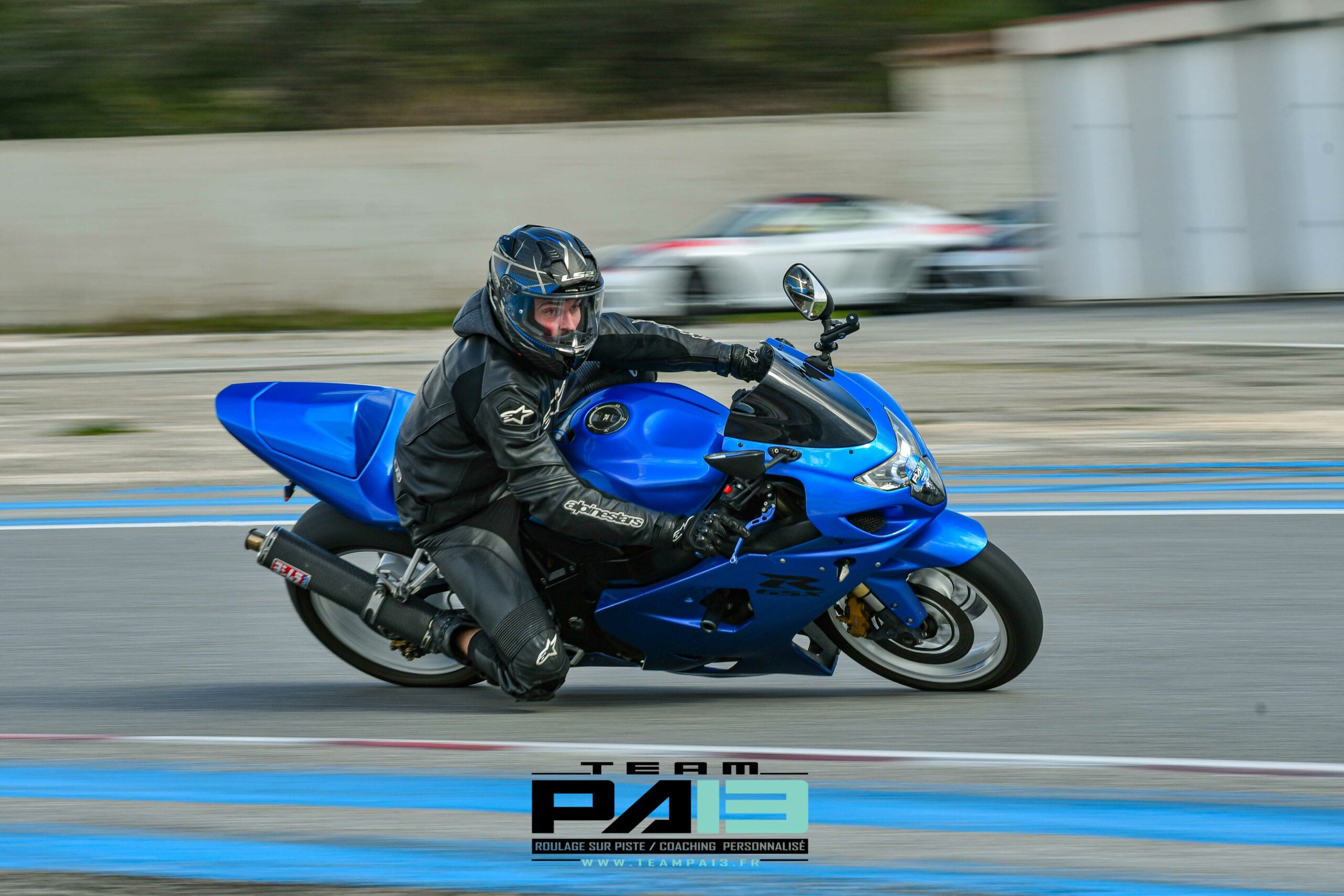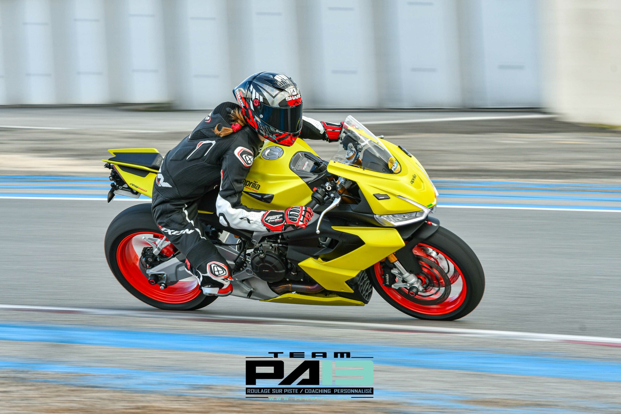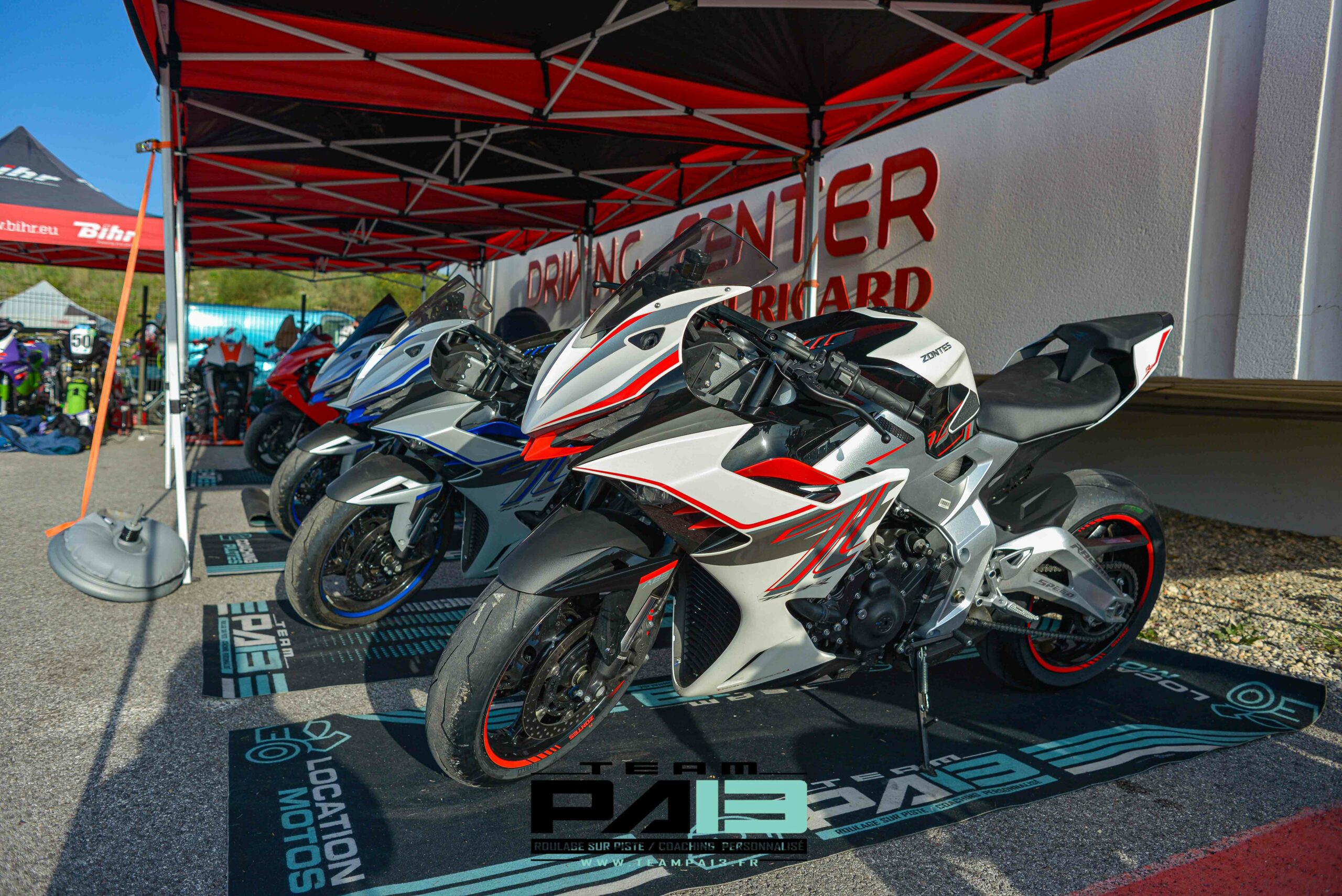 Louez une moto préparée piste et votre équipement complet (combinaison, casque, bottes) directement sur place